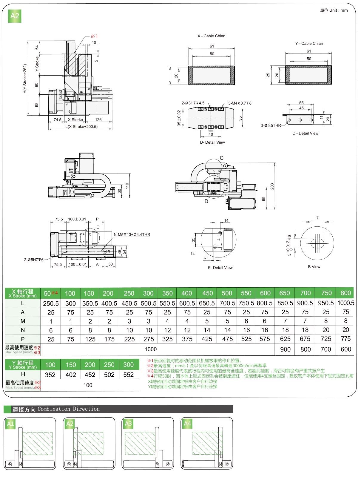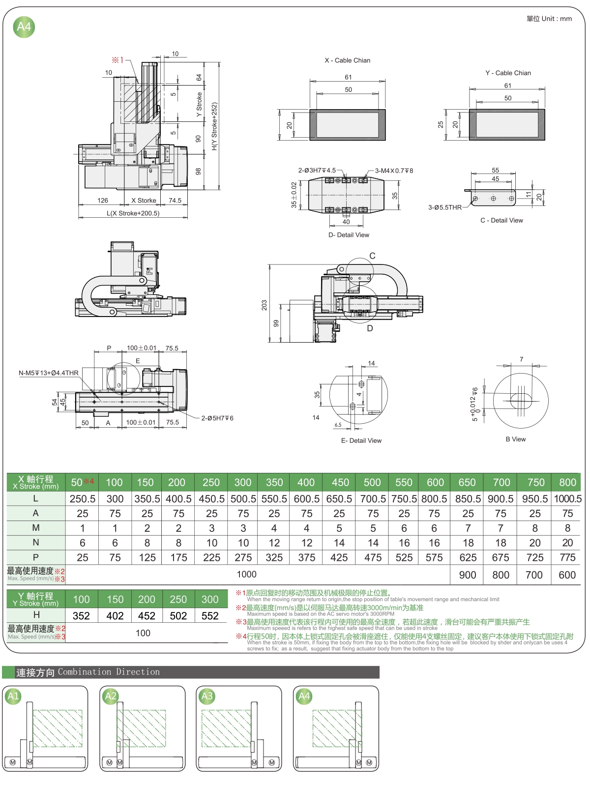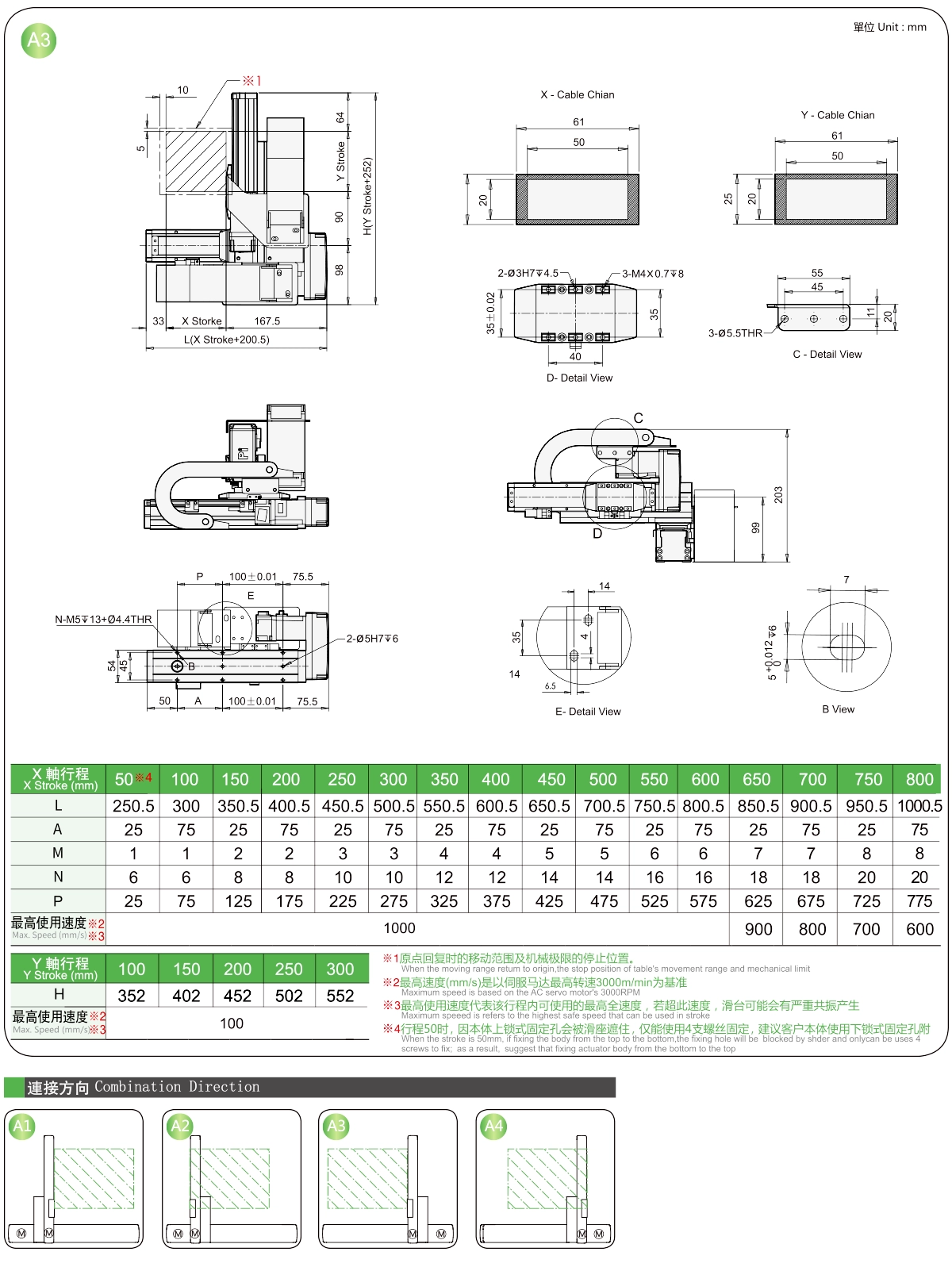| ระยะชัก Y (มม.) | 100 | 150 | 200 | 250 | 300 |