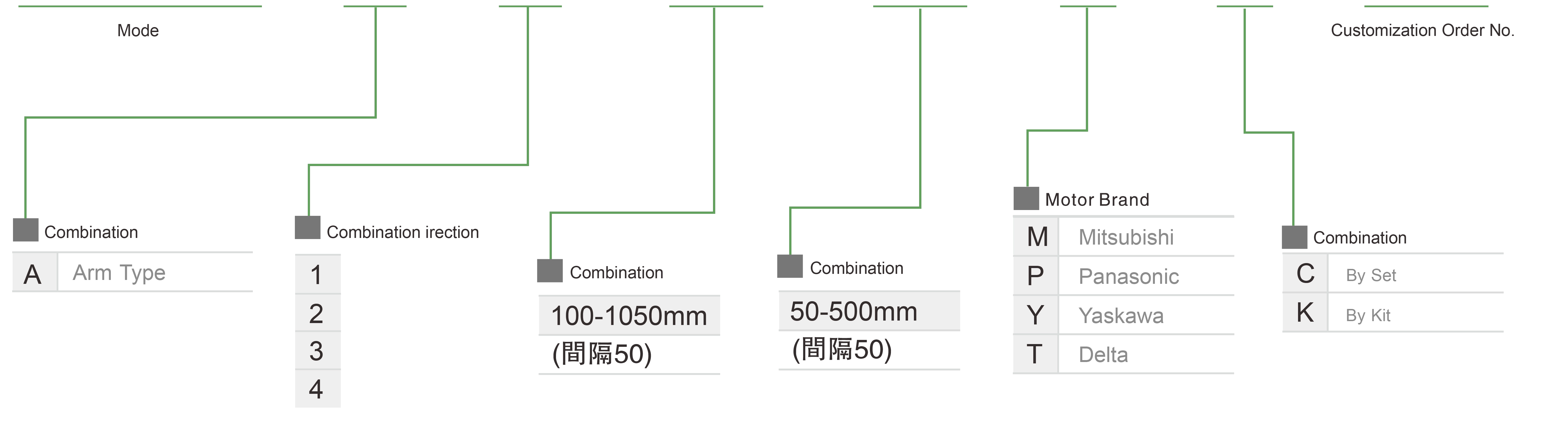 | มาตรฐาน | บอลสกรู | XYGH210-A | ประเภทแขน | 2 แกน | 20 | 2 | - | 1000 | 100 | - | 500~800 | 100~300 | - |