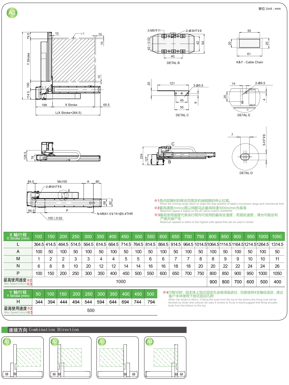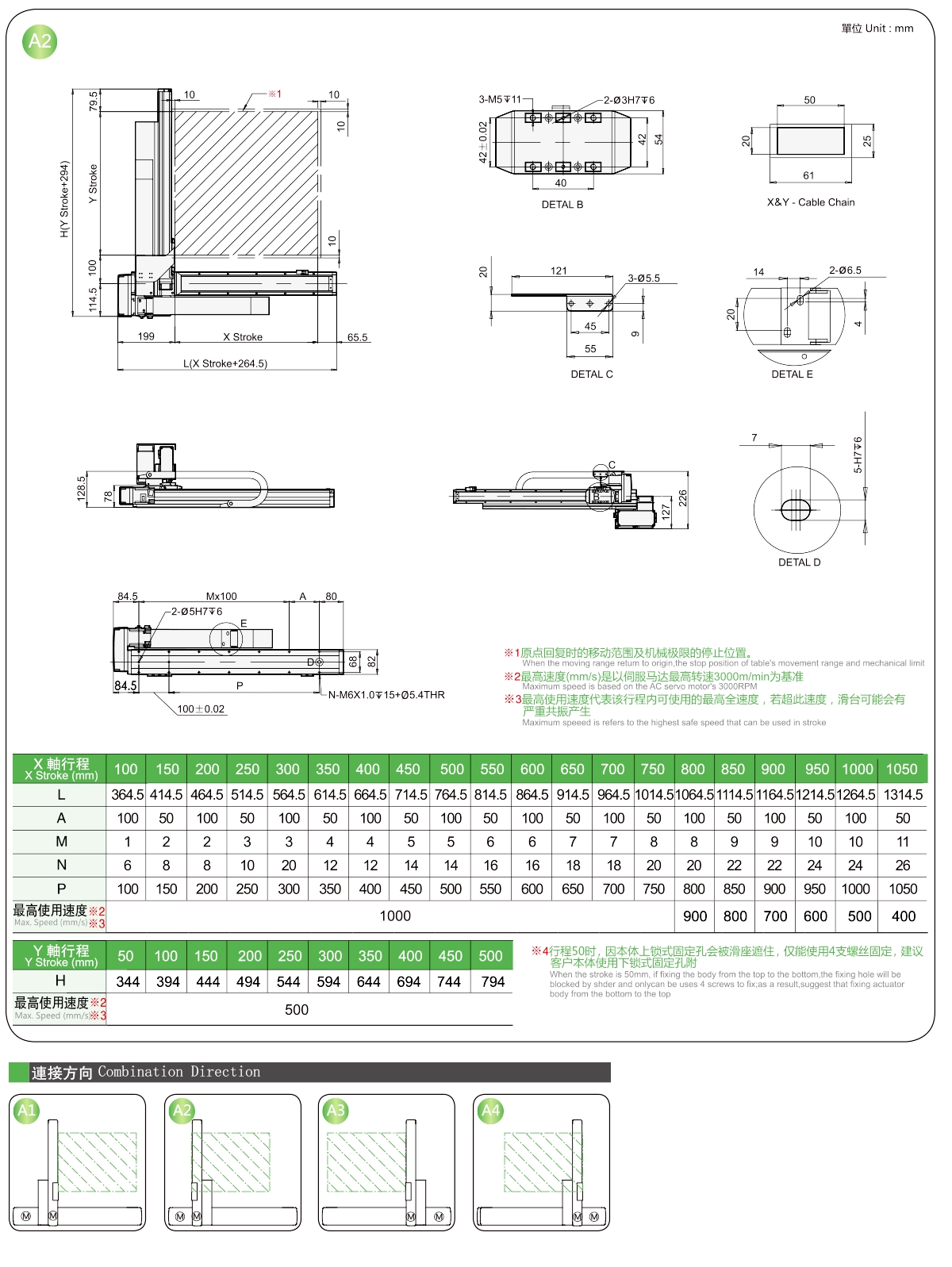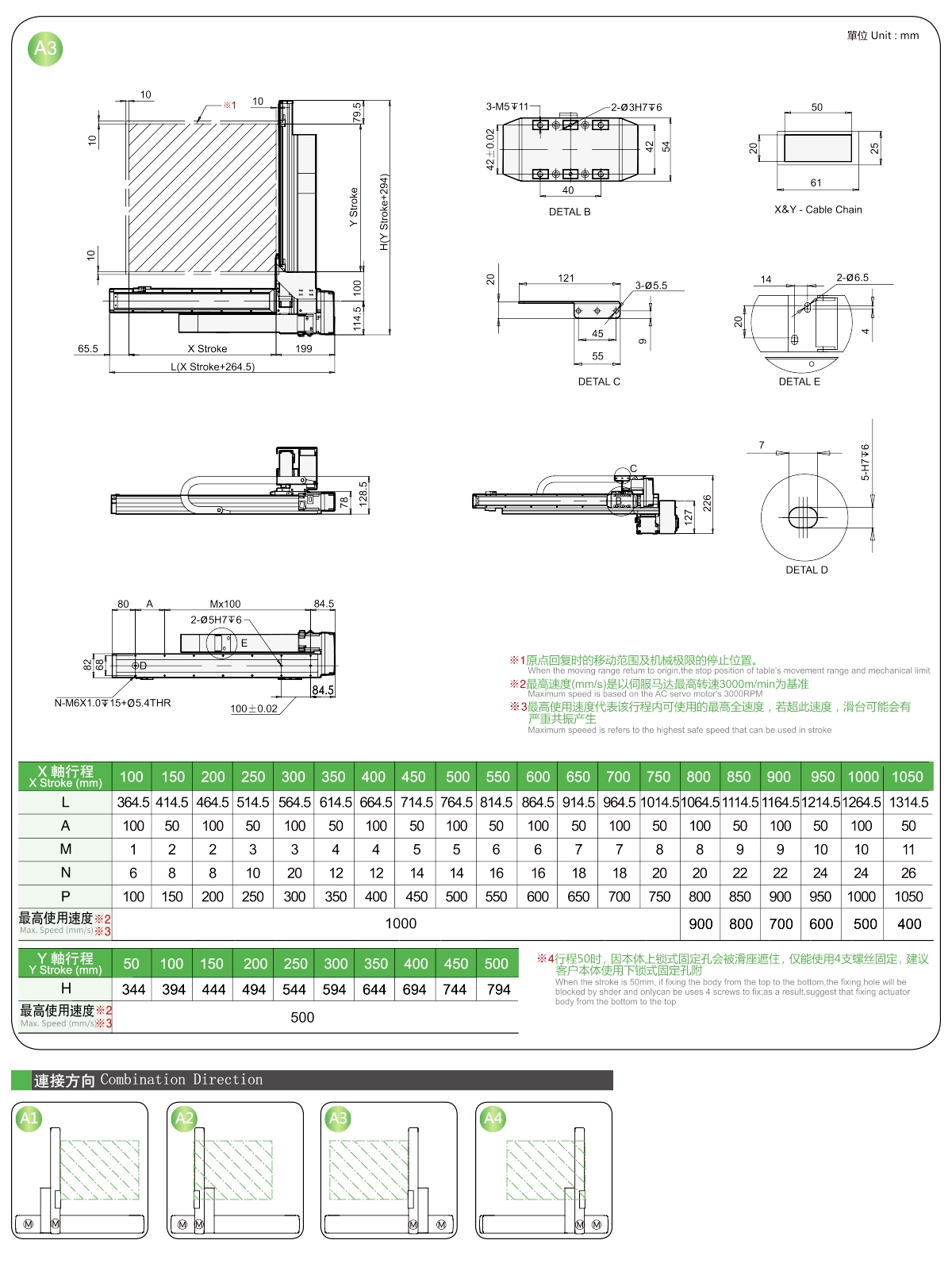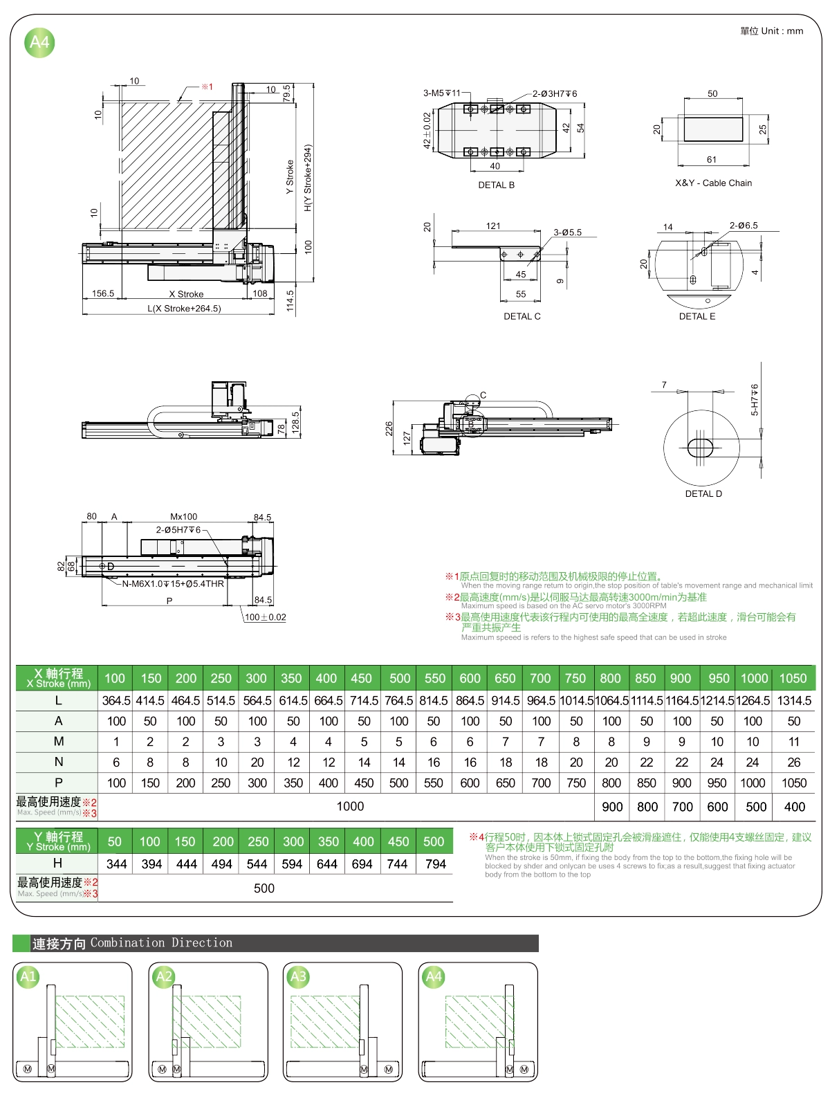 | ระยะชัก Y (มม.) | 50 | 150 | 200 | 250 | 300 | |