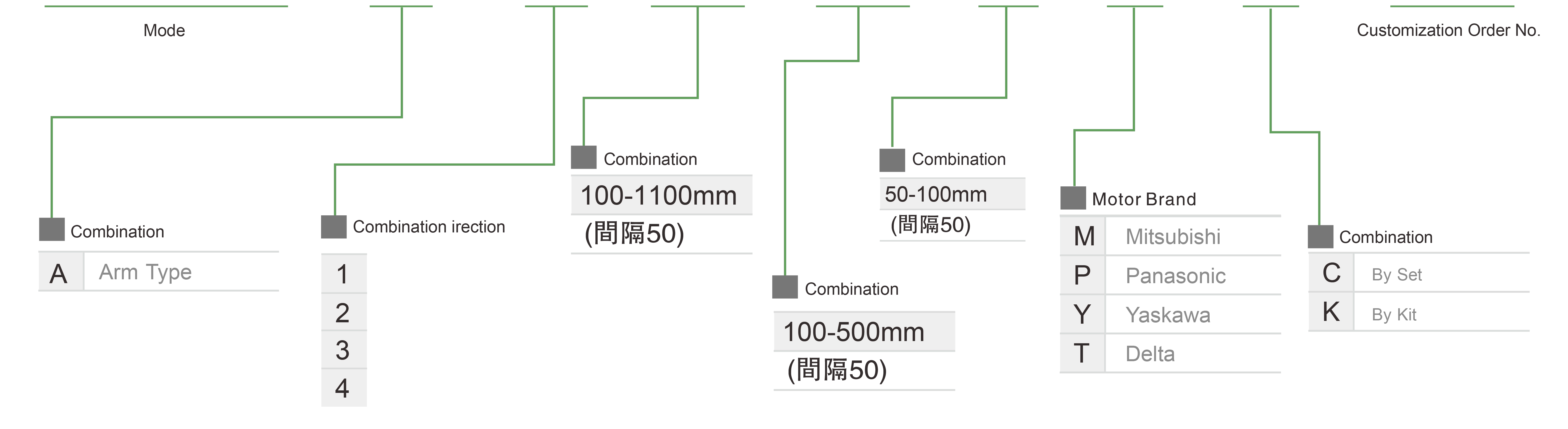 | มาตรฐาน | บอลสกรู | XYGH210-A | ประเภทแขน | 2 แกน | 20 | 2 | - | 1000 | 100 | - | 500~800 | 100~300 | - |