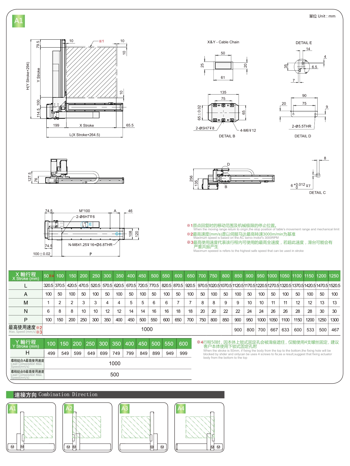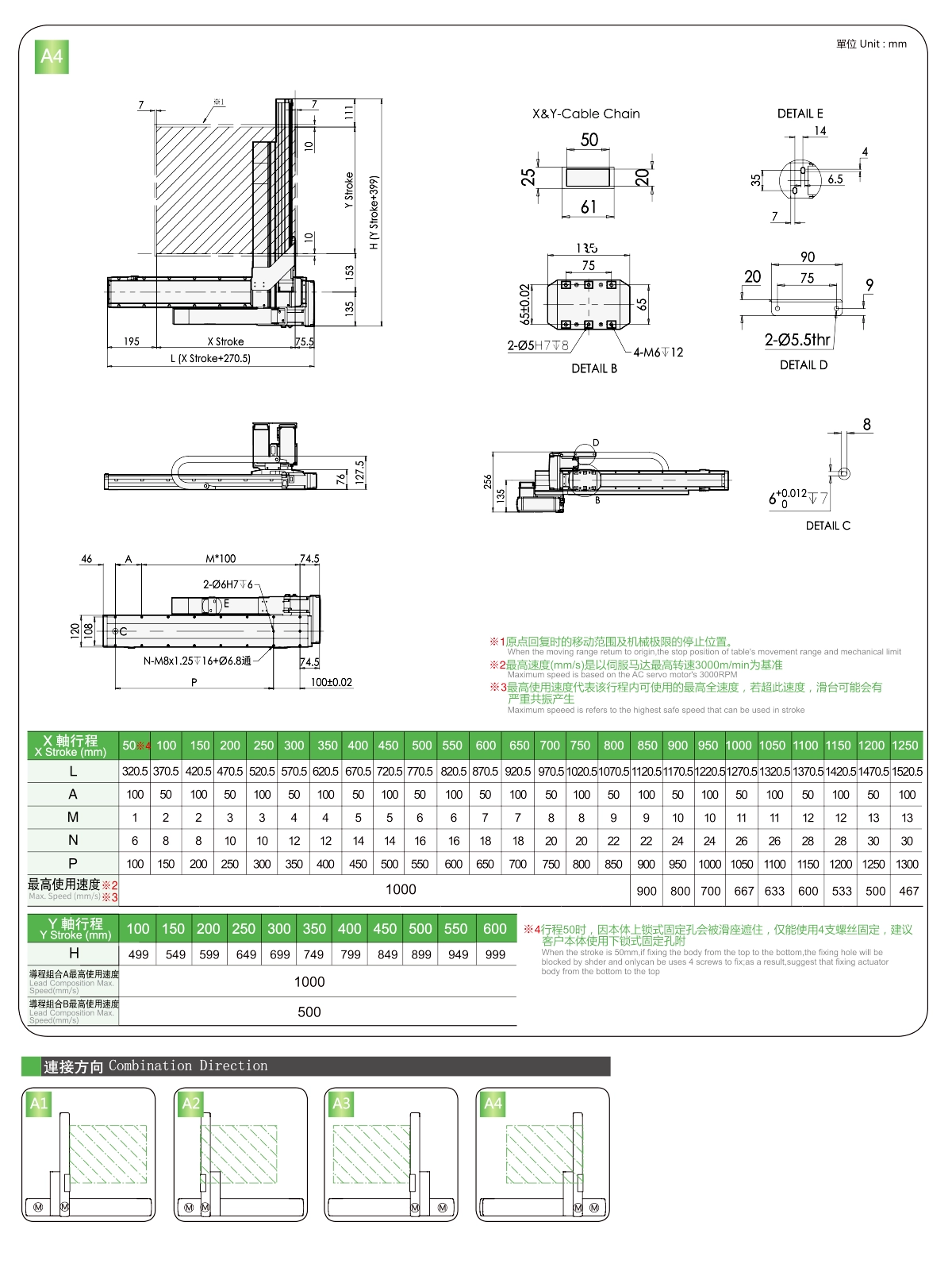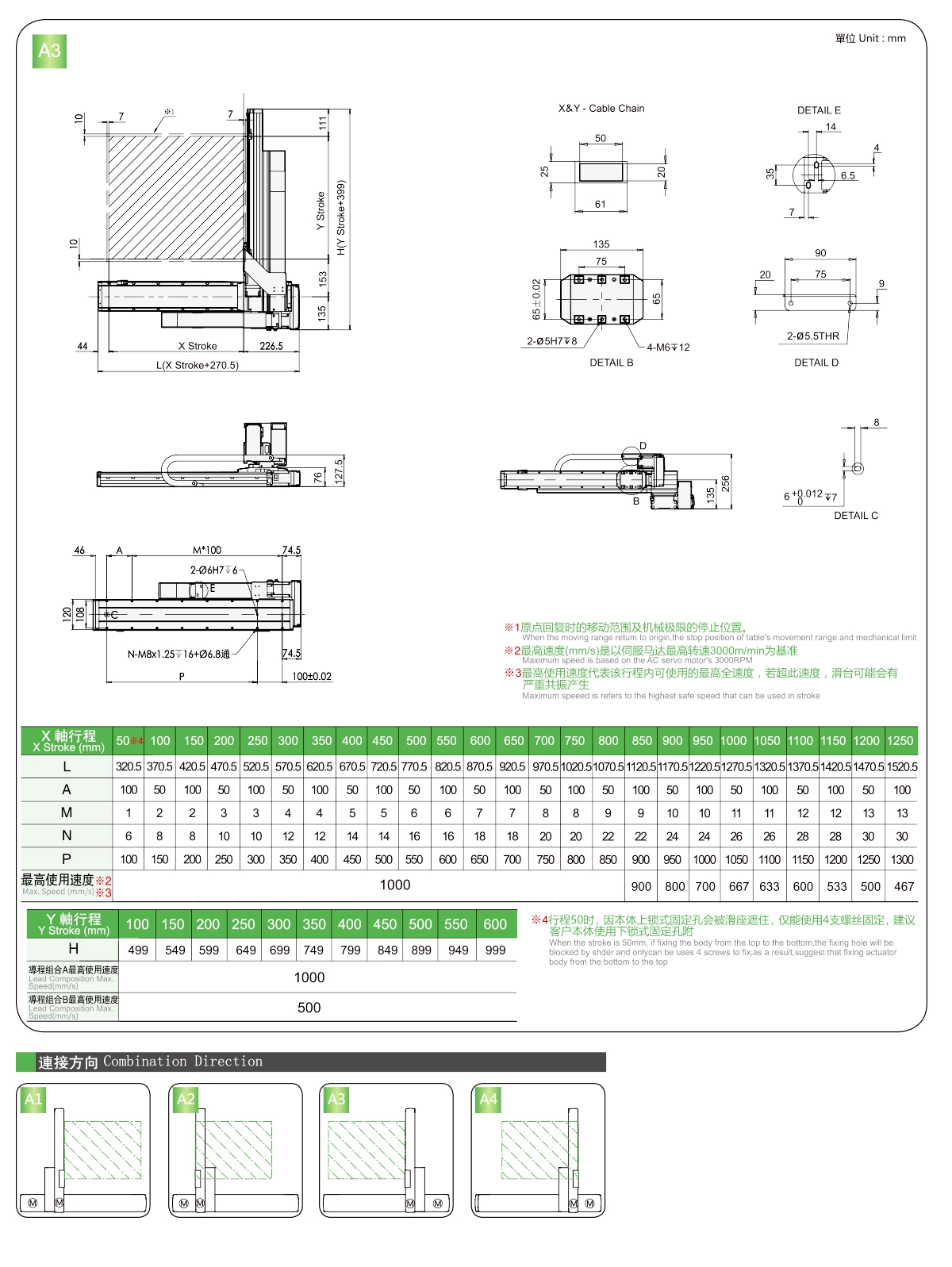 | มาตรฐาน | บอลสกรู | XYGH210-A | ประเภทแขน | 2 แกน | 20 | 2 | - | 1000 | 100 | - | 500~800 | 100~300 | - |